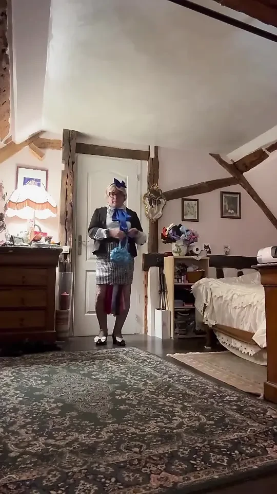 Dışarıda bir akşam için küçük bir Gingham eteğiyle giyinmiş